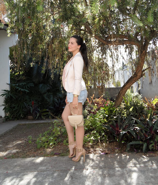 Tenía alguito de tiempo sin usar tacones, así que agregué un par de sandalias de tacón alto color nude, hacían juego perfecto con el blazer y con mi carterita nude con aro dorado.